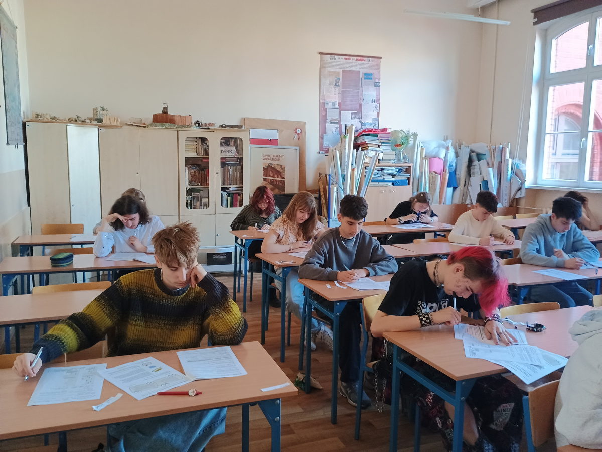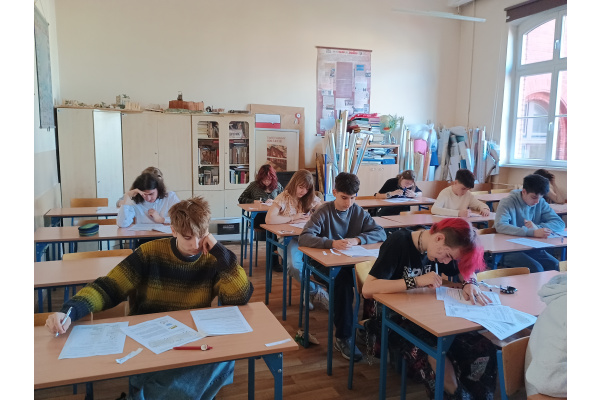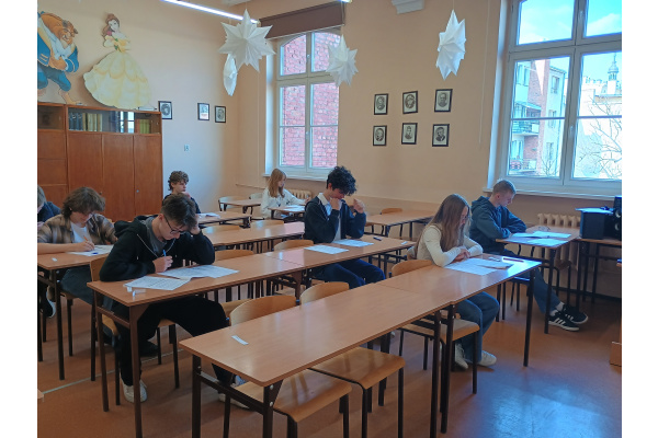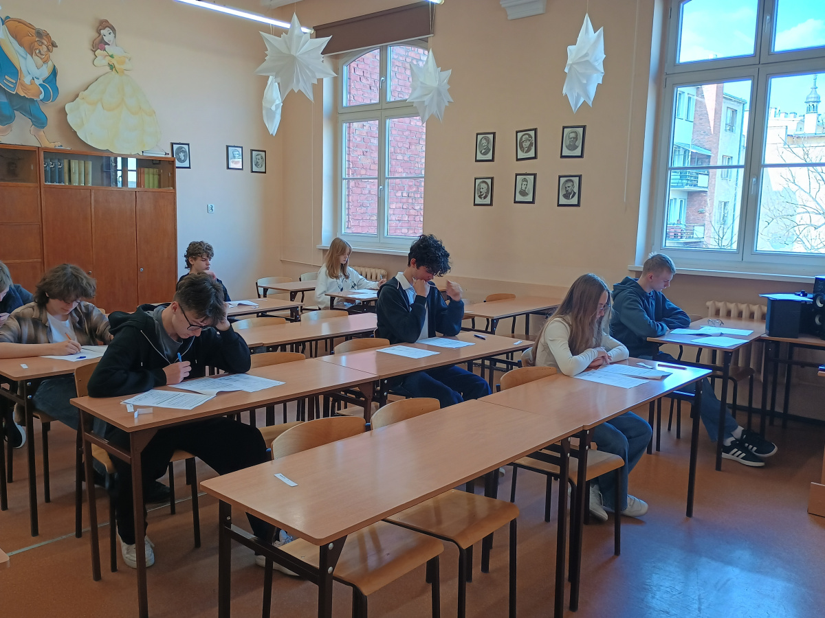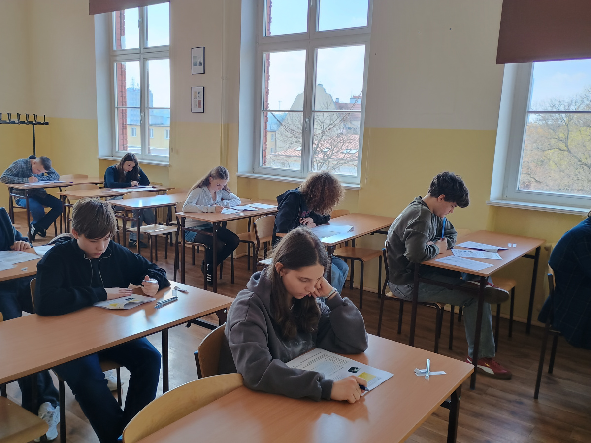 Konkurs miał formę egzaminu ósmoklasisty, a nagrania do części sprawdzającej rozumienie ze słuchu zostały przygotowane przez zaangażowanych uczniów naszej szkoły z klas 3e i 3b, z czego jesteśmy niezwykle dumni.