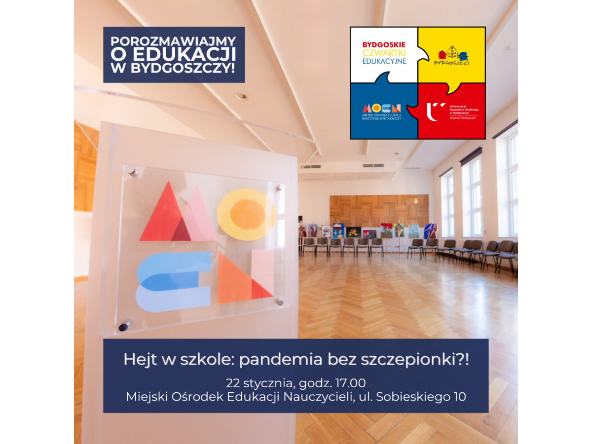 Zapraszamy do udziału w kolejnym cyklu spotkań organizowanych w ramach projektu: Bydgoskie Czwartki Edukacyjne. Spotkania te stały się okazją do wymiany doświadczeń, refleksji oraz wspólnego poszukiwania rozwiązań na najważniejsze wyzwania stojące przed współczesną szkołą. Tematyka każdego z wydarzeń jest skierowana zarówno do nauczycieli, dyrektorów, uczniów, ich rodziców, jak i nauczycieli akademickich, studentów oraz wszystkich osób zaangażowanych w kształtowanie przyszłości edukacji.