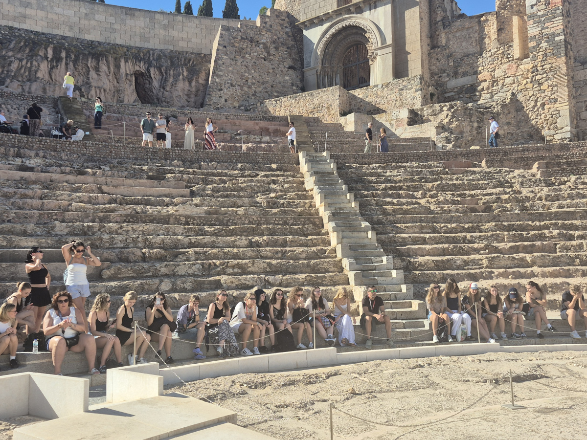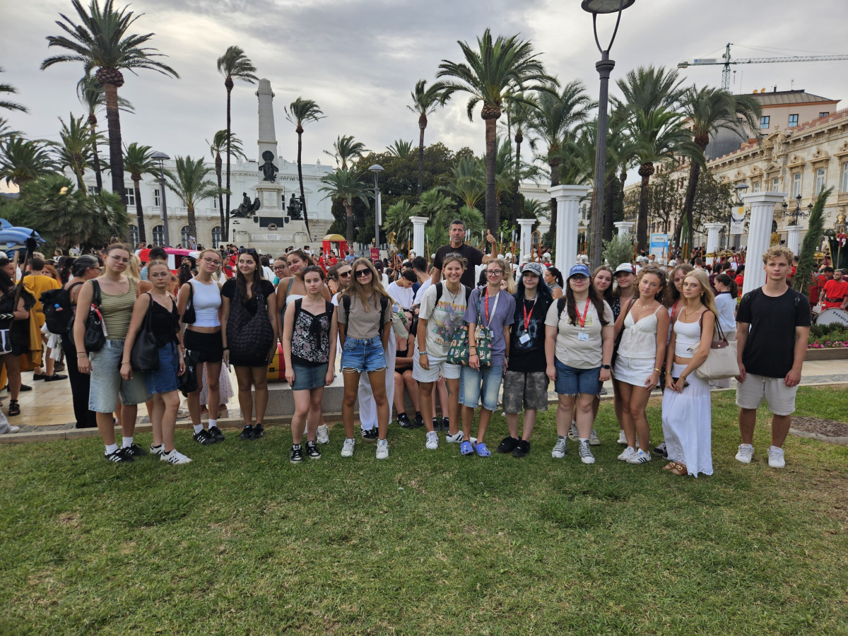 Kolejna wspaniała wycieczka do Hiszpanii za nami! 24 września 2025 klasa 3h wyruszyła na Półwysep Iberyjski w celach turystyczno-edukacyjnych. Wycieczka z kursem języka hiszpańskiego trwała 7 dni. Podszkoliliśmy naszą znajomość języka podczas lekcji hiszpańskiego i poćwiczyliśmy nasze umiejętności w codziennych konwersacjach, całkowicie zanurzeni w lokalną kulturę i język. Wzięliśmy nawet udział w dwóch lekcjach tańca flamenco! Zwiedziliśmy mnóstwo przepięknych miejsc. Zachwyciła nas architektura Granady, zwiedziliśmy teatr rzymski i muzeum archeologii podwodnej w Cartagenie, uczestniczyliśmy także w barwnej i spektakularnej paradzie Rzymian i Kartagińczyków. Ponieważ mieszkaliśmy w malowniczej nadmorskiej miejscowości Los Alcázares, w naszym programie nie zabrakło sportów wodnych i spacerów po plaży oraz degustacji lokalnego jedzenia. Teraz już wiemy, jak smakują hiszpańskie tapas czy paella. Nie są to już tylko potrawy ze zdjęcia w podręczniku do hiszpańskiego.
